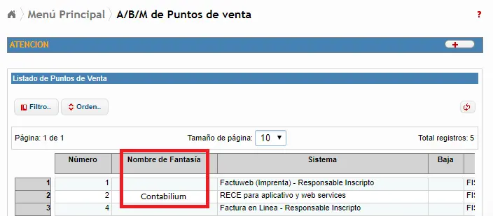 - Número de orden: Un número correlativo para identificar el punto de venta dentro de sus establecimientos.
