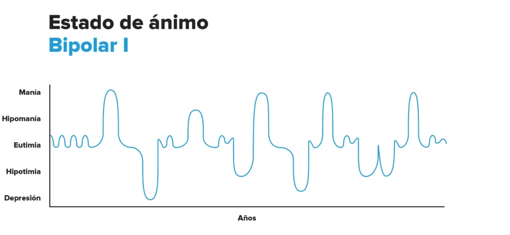 - Trastorno Bipolar I: Se caracteriza por al menos un episodio maníaco, que puede ir acompañado de episodios depresivos. Los episodios maníacos son más intensos y prolongados que en el trastorno bipolar II.