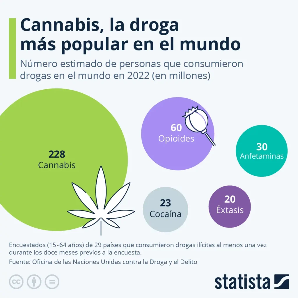 • Cultura y Aceptación Social: La actitud social hacia el cannabis juega un papel importante. En culturas donde el consumo está más aceptado, las tasas de consumo tienden a ser mayores.