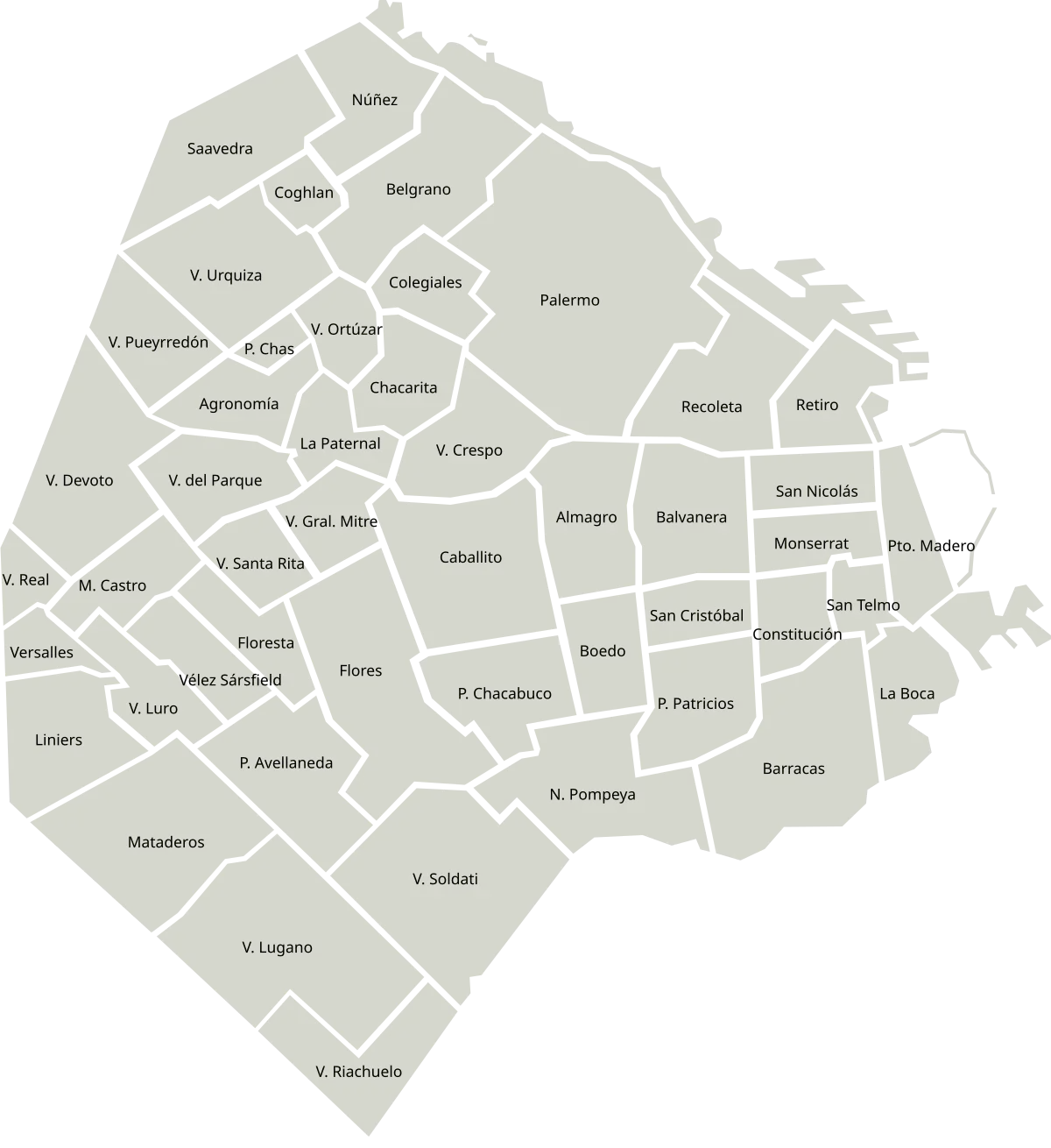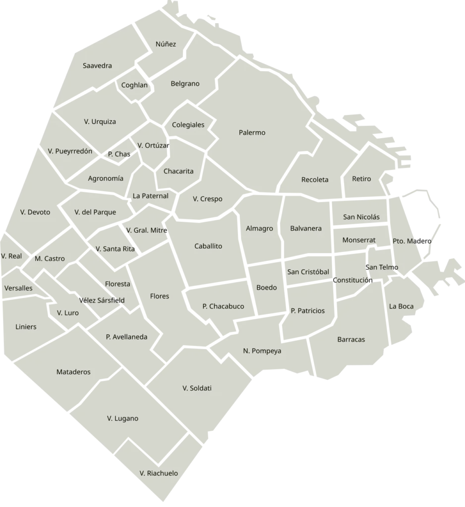 Ejemplo Recoleta, Palermo Villa Crespo, Chacarita, Villa Santa Rita