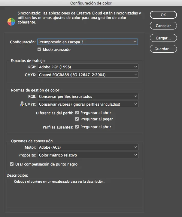Utilizar el perfil CMYK correcto es esencial para una reproducción precisa del color. Se recomienda trabajar con Fogra Coated 39, un perfil ampliamente utilizado en Europa que garantiza una alta fidelidad de color en la mayoría de los papeles. Para resultados más precisos, se puede considerar el perfil ISOCoatedV2.
