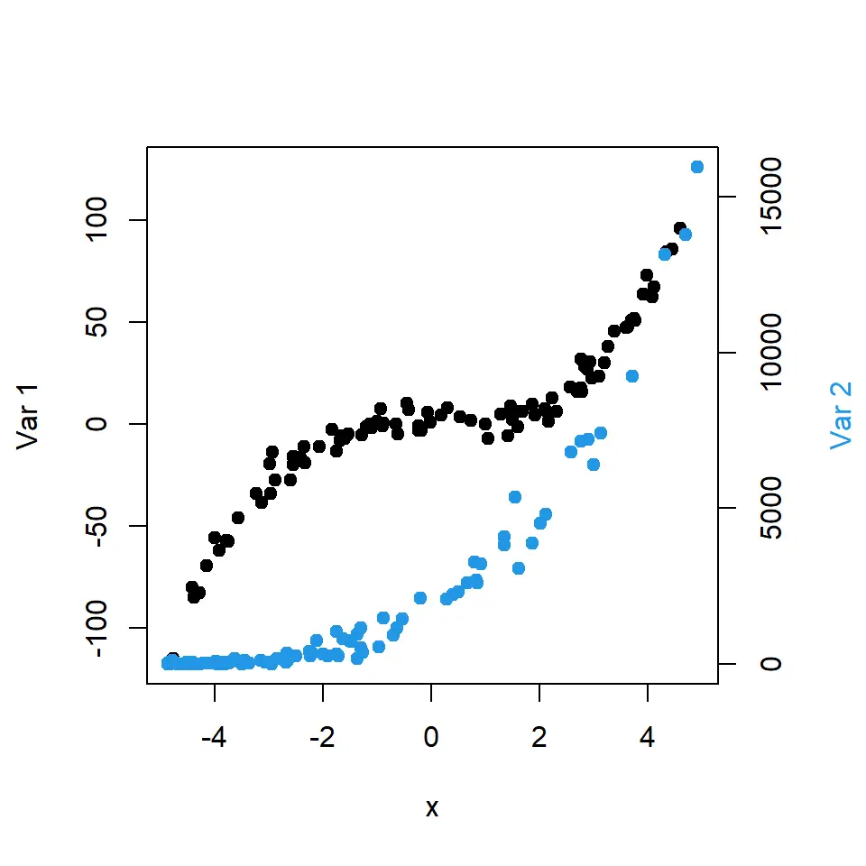 # Datos de ejemplox <- c(1, 2, 3, 4, 5)y <- c(2, 4, 1, 5, 3)# Gráfico sin ajustar la escalaplot(x, y)# Gráfico con escala ajustadaplot(x, y, xlim = c(0, 6), ylim = c(0, 6))En este código, primero creamos un gráfico sin ajustar la escala. Luego, creamos otro gráfico usando xlime ylimpara establecer los límites del eje x entre 0 y 6 y los límites del eje y también entre 0 y Esto resulta en un gráfico con una escala modificada.