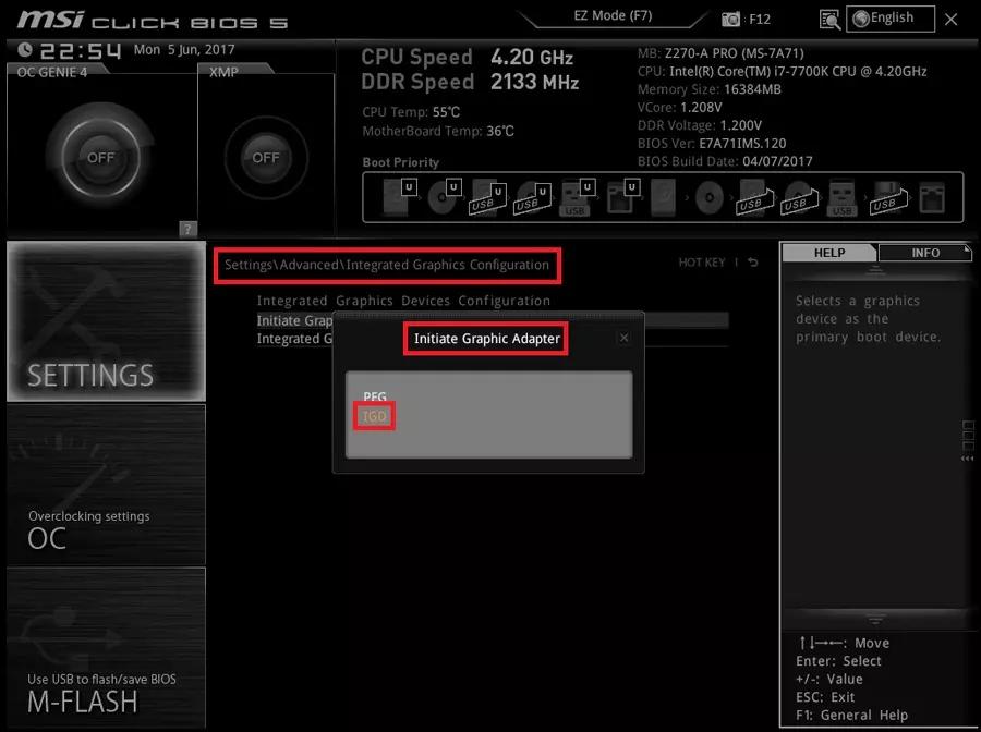 - Desactivar la gráfica integrada. La opción exacta puede variar, pero generalmente se encontrará bajo nombres como Integrated Graphics , Onboard Graphics , etc.