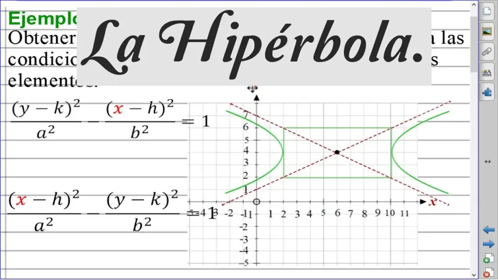 - ¿Qué sucede si no se conocen las asíntotas? Si no se conocen las asíntotas, se necesita un punto adicional de la hipérbola para poder determinar el valor de 'b'. Se sustituye las coordenadas de ese punto en la ecuación general y se resuelve para 'b'.