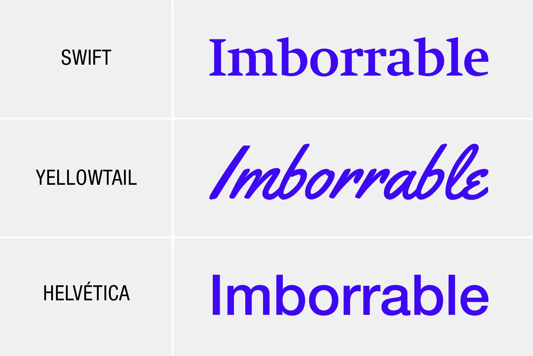 | Legibilidad | Alta (especialmente en texto impreso) | Alta (tanto impreso como en pantalla) | Baja en textos largos | Baja en textos largos |