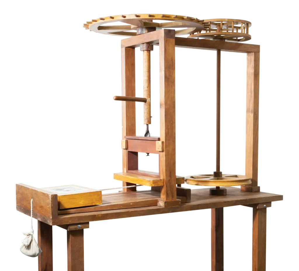 - Prensado: La página compuesta se colocaba sobre el papel, y el conjunto se pasaba por una prensa, ejerciendo presión para transferir la tinta a la hoja. La prensa era un mecanismo complejo que requería fuerza y precisión.