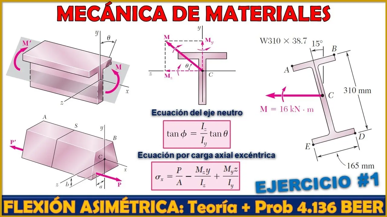Cuando la sección transversal no es simétrica, la ubicación del eje neutro se vuelve más compleja. En este caso, el eje neutro no coincide con el centroide geométrico, y su ubicación depende de la distribución de las áreas y de las propiedades mecánicas del material. Para determinar la posición del eje neutro, se deben realizar cálculos más elaborados, utilizando conceptos como el momento de inercia y el momento estático.