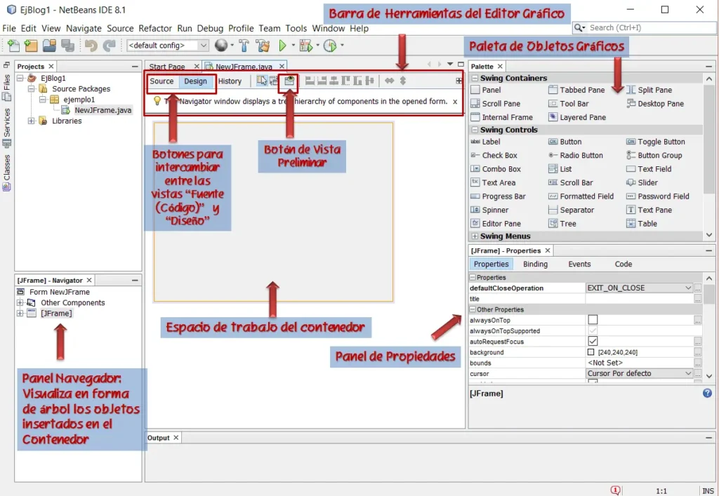 Utilizando el Editor de Diseño de NetBeans