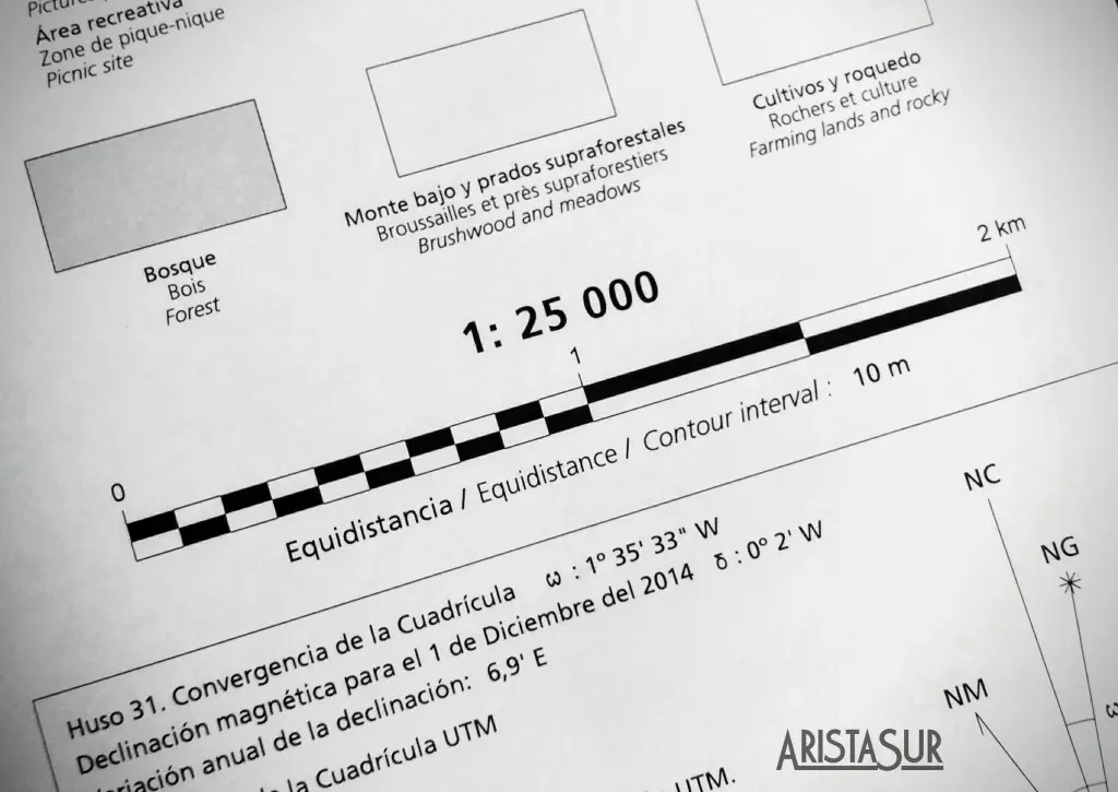 | 1:25000 | 2 cm = 500 m | Mapas topográficos regionales, planificación de rutas de senderismo. |