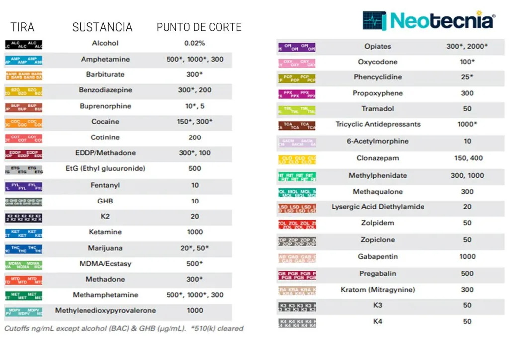 - Tipo de droga: Cada droga tiene un tiempo de detección diferente en el organismo.