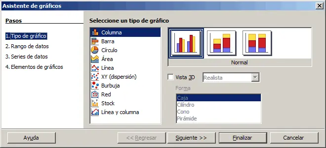 Tipos de gráficos en OpenOffice Writer