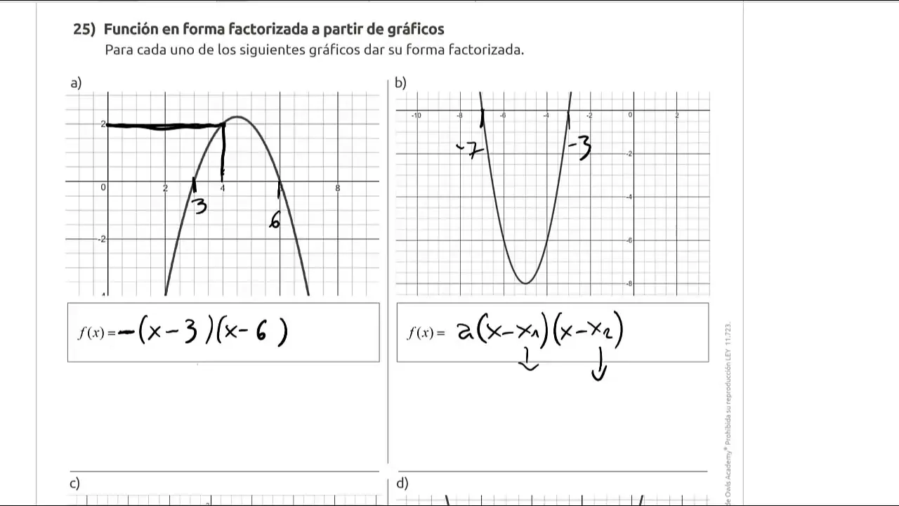 Pasos para graficar una función cuadrática en su forma factorizada