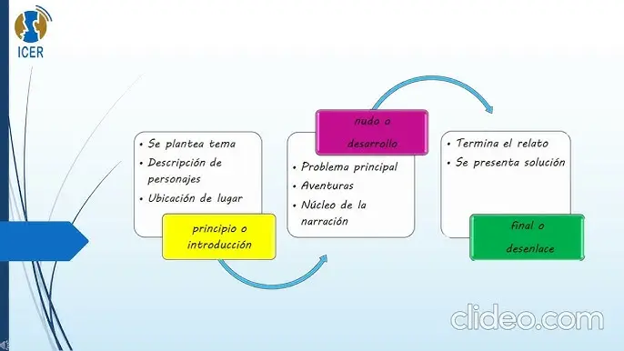 | Eventos | Situación inicial, introducción de personajes | Acciones, obstáculos, desafíos | Resolución del conflicto, consecuencias |