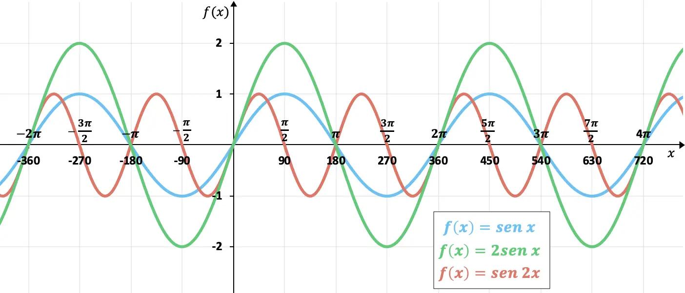 - ¿Cuál es la amplitud de -sen(x)? La amplitud es 1, igual que la de sen(x).