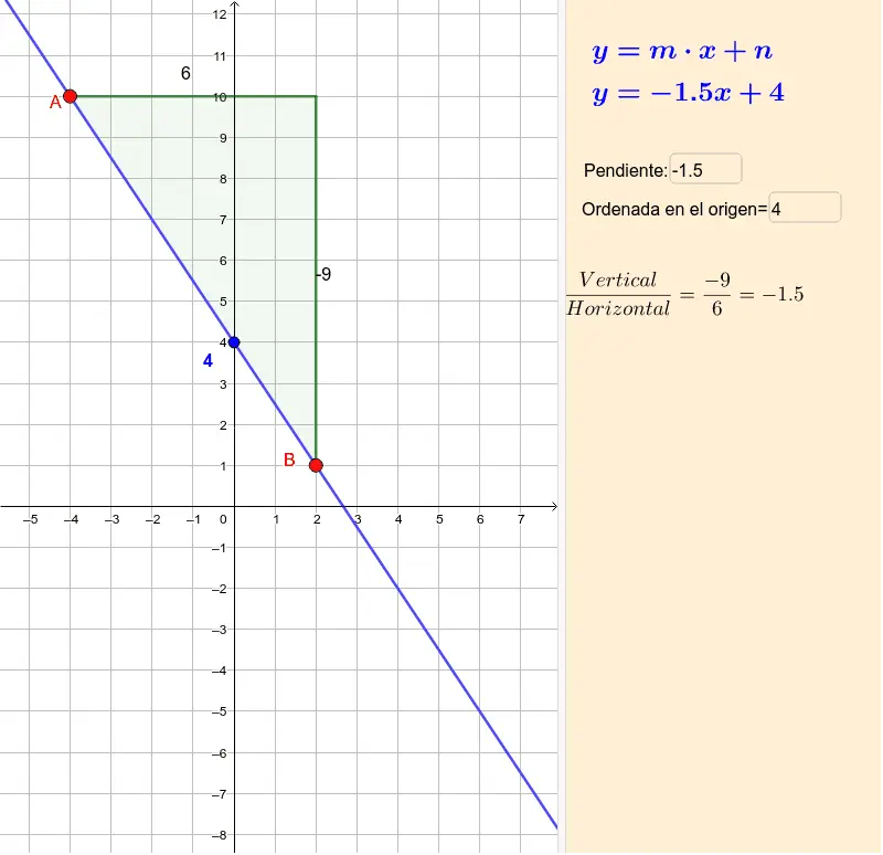 - m = -1/2: La recta baja 1 unidad por cada 2 unidades que avanza a la derecha.
