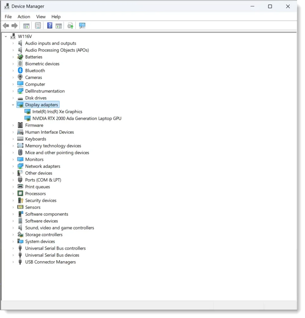 devmgmt.mscy presiona Enter. - En el Administrador de dispositivos, expande la sección "Adaptadores de pantalla".