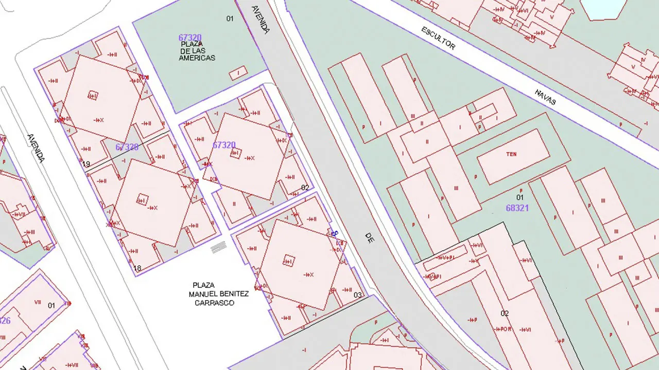 • Representación de la parcelación catastral existente.