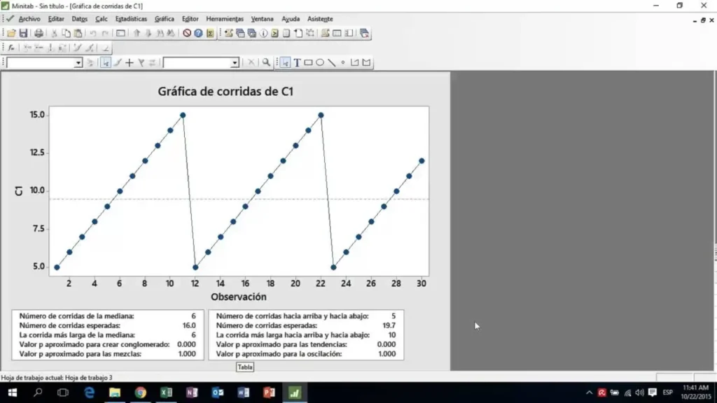 La interpretación de un gráfico de corrida se centra en la identificación de patrones y tendencias en los datos. Estos patrones pueden indicar: