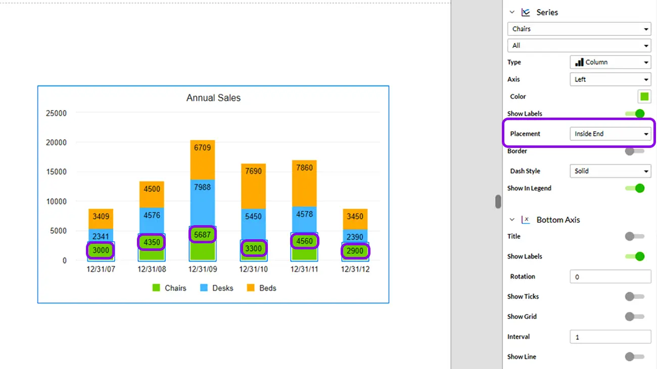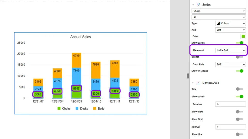 ¿Puedo agregar etiquetas a todos los puntos de datos? Sí, puedes agregar etiquetas a todos los puntos o seleccionar solo algunos.