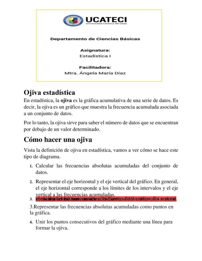 - ¿Para qué sirve una ojiva? Para visualizar y analizar la distribución de datos, mostrando las frecuencias acumuladas.