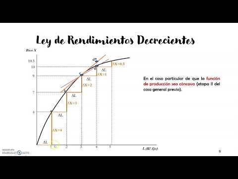 La ley de rendimientos decrecientes establece que, al aumentar un factor variable de producción (como la mano de obra) manteniendo fijos otros factores (como el capital o la tierra), el producto marginal (la producción adicional generada por cada unidad adicional del factor variable) inicialmente aumenta, pero eventualmente disminuye. Esto significa que, aunque la producción total sigue aumentando, lo hace a un ritmo cada vez menor.