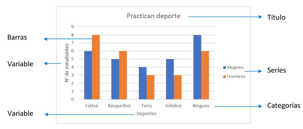 - Leyenda: Indica qué color o patrón corresponde a cada conjunto de datos.