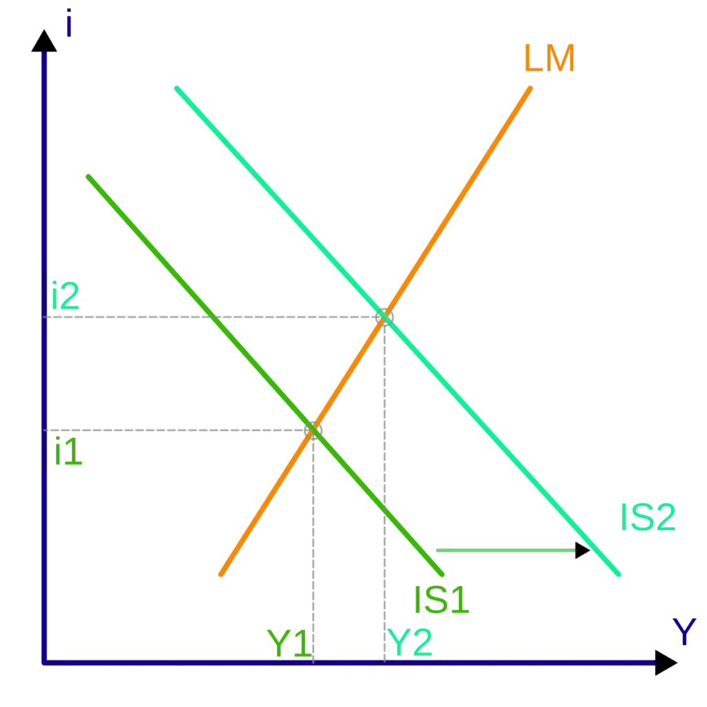 - Cambios en el gasto público (G): Un aumento en el gasto público desplaza la curva IS hacia la derecha.