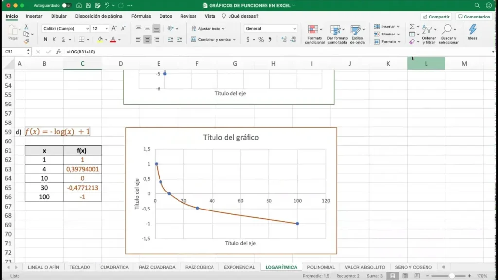 - Base del logaritmo: La base del logaritmo (por defecto 10 en Excel) influye en la apariencia del gráfico. Considerar cuál base es más adecuada para sus datos.