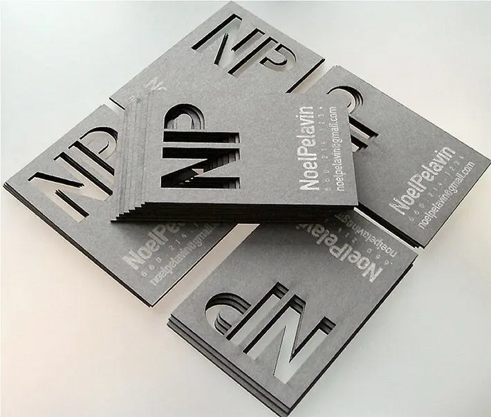 • Tarjetas de presentación: Diseño de tarjetas con formas únicas y cortes creativos, que las hacen destacar entre la competencia.