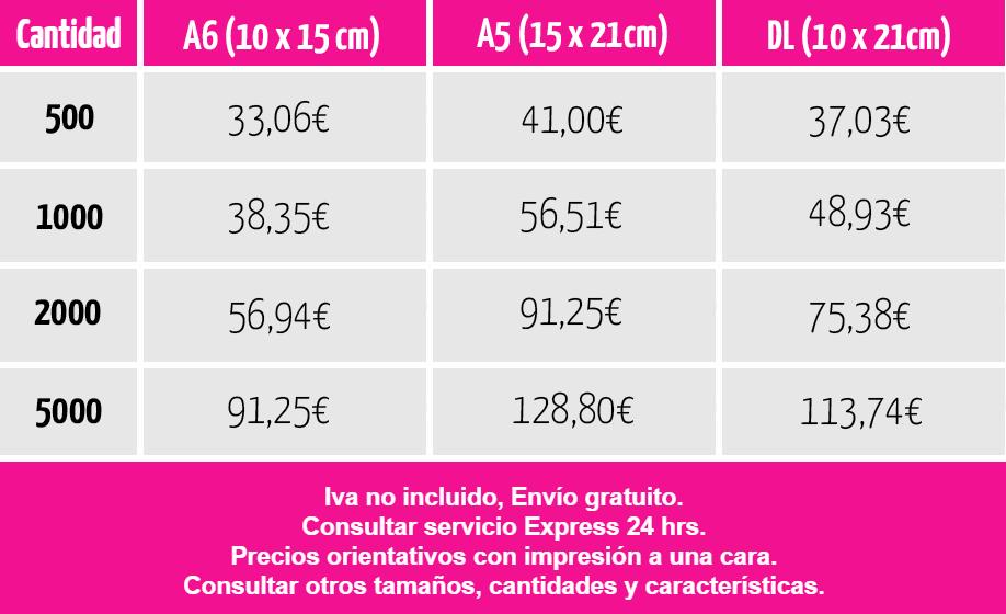 - ¿Cuál es el precio por unidad de un volante? El precio por unidad disminuye a medida que aumenta la cantidad de volantes impresos.
