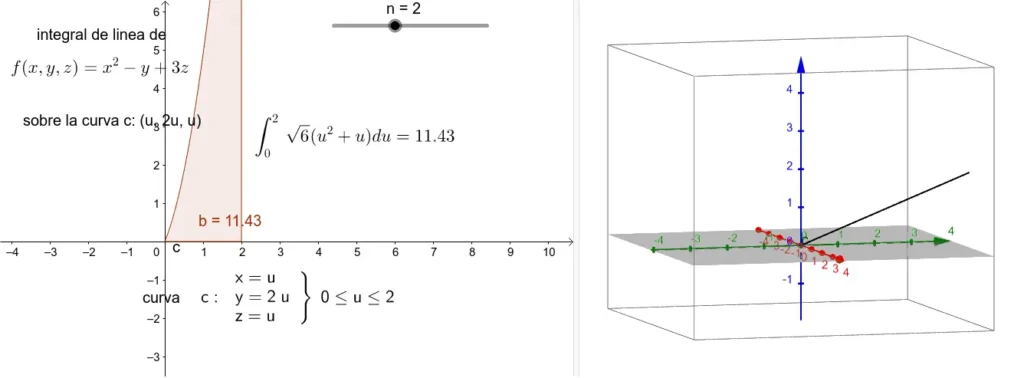 - Integral de línea de un campo vectorial: Se calcula la integral de un campo vectorial a lo largo de una curva. Representa, por ejemplo, el trabajo realizado por una fuerza a lo largo de una trayectoria.